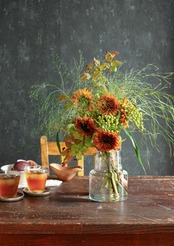 そして、ナチュラルでシックなトーンのグリーンたち、そこに実物がアクセントを添えます。